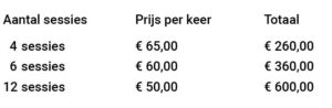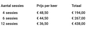 Met een strippenkaart profiteer je van korting per behandeling en werk je gericht aan herstel en onderhoud.